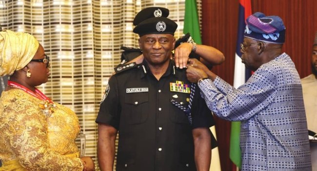 President Bola Tinubu on Wednesday decorated Tunji Disu as the Acting Inspector-General of Police at the State House in Abuja.