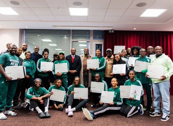Chairman of the National Sports Commission, Shehu Dikko, and Director-General Bukola Olopade presented the awards on behalf of President Bola Ahmed Tinubu, who had made the promise following the team’s historic fifth consecutive continental title.