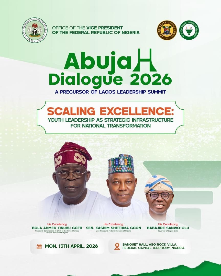 Convened in collaboration with the Office of the Vice President of Nigeria and the Lateef Jakande Leadership Academy under the Lagos State Government, the Abuja Dialogue will bring together thought leaders and stakeholders to generate ideas, partnerships, and policy insights that position youth leadership as a critical driver of Nigeria’s long-term development and institutional renewal.